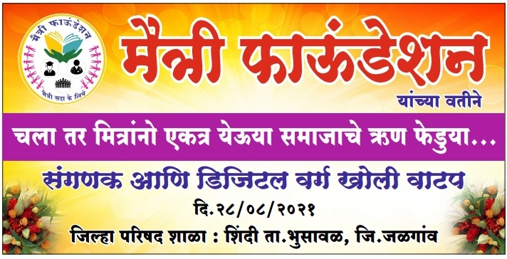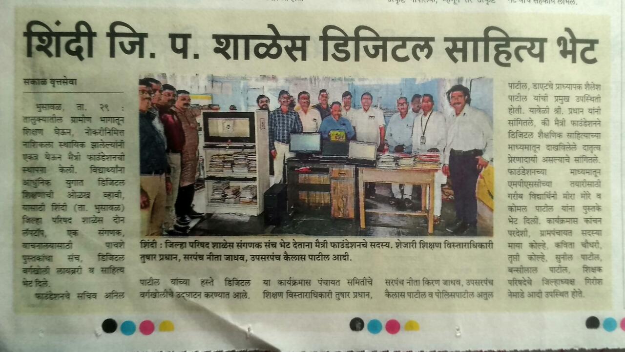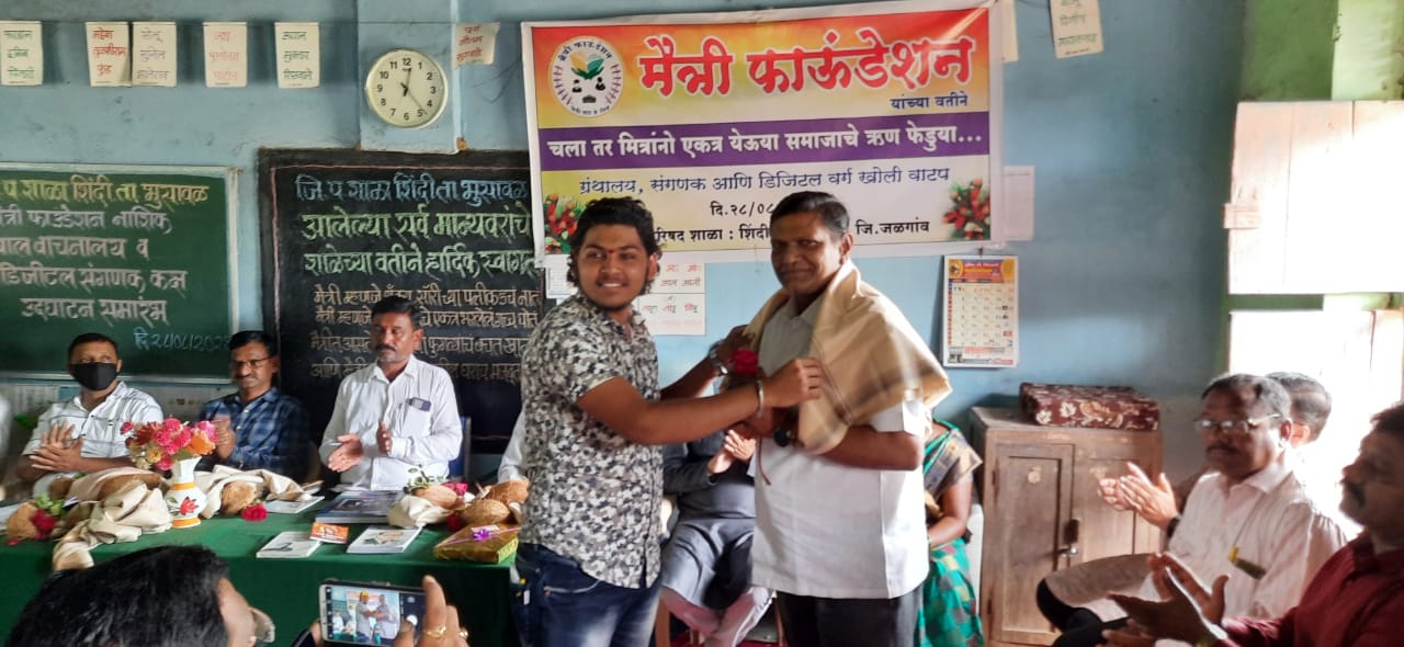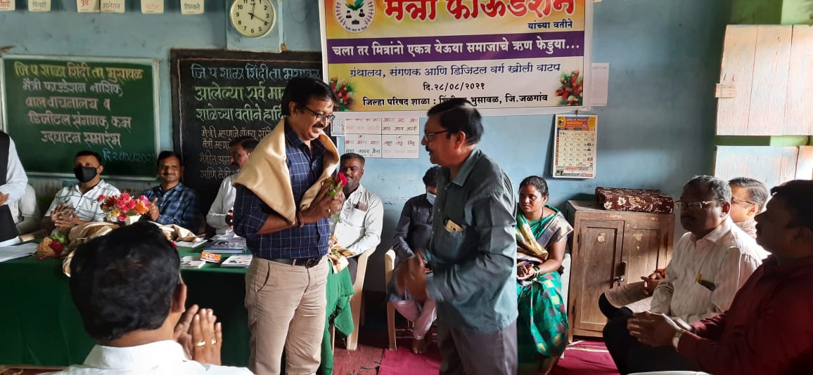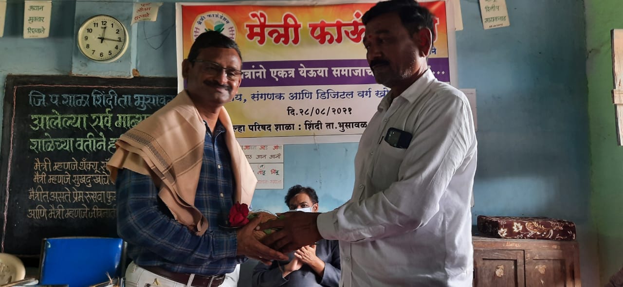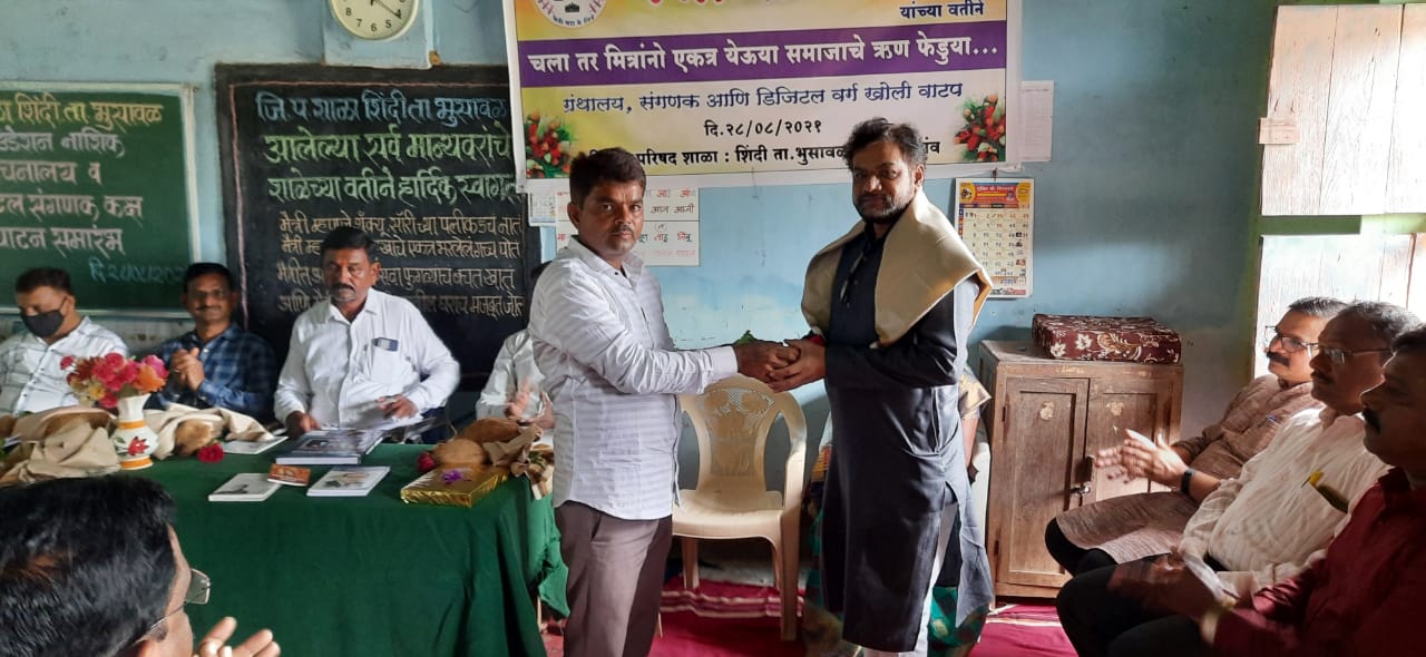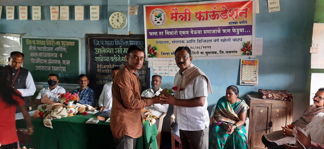 संगणक, ग्रंथालय, आणि डिजिटल वर्ग खोली वाटप कार्यक्रमाचे ठिकाण - जिल्हा परिषद शाळा, शिंदी, तालुका - भुसावळ २८/०८/२०२१